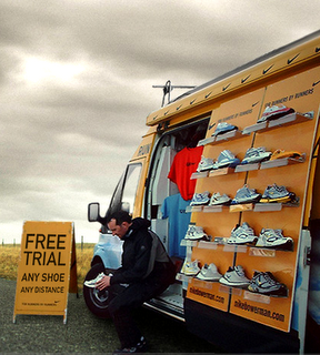 Er wordt in de Nike Trial Van niks verkocht, als je schoenen wilt kopen dan ga je maar naar de winkel. Wel kun je er gratis advies krijgen en drinkwater. Een sympathieke en effectieve vorm van brand activation.