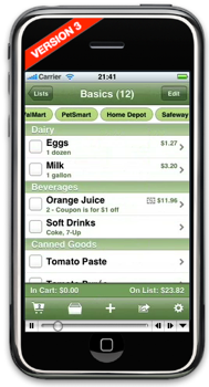 Deze app van MidCentury Software laat je boodschappenlijstjes maken voor verschillende winkels en situaties. Je kunt prijzen toevoegen, je budget berekenen etc. Hier is meer info.