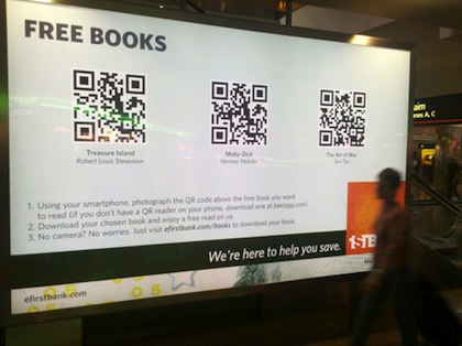 Deze abri biedt gratis digitale boeken aan: maak een foto van de barcode en je krijgt het boek gelijk op je mobiel / iPad.
