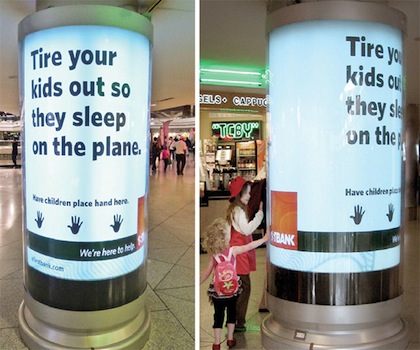 Recentelijk liep ik rond op de luchthaven van Minneapolis. En toen zag ik dit. Firstbank gebruikte haar abri’s om reizigers, die net als ik geesteloos ronddwaalden, een helpend handje te bieden. ‘We’re here to help you…’